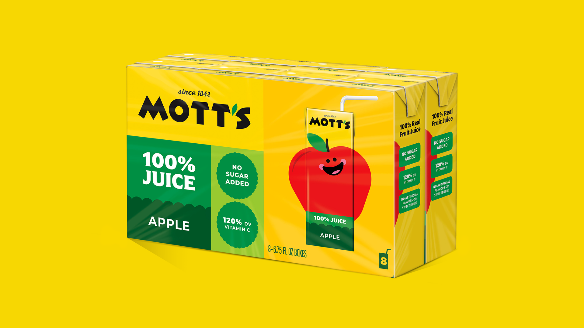 For this project, I developed the branding and packaging design for an entry-level, low-sugar juice line under the Mott’s brand, delivered in a tetra pack format. Utilizing Mott’s new modular design system, I built a cohesive visual framework that could scale across SKUs while maintaining consistency. Centered around a playful jungle animal theme, I created illustrated characters and fruit-forward graphics across the juice box panels and multipack packaging, paired with clear low-sugar messaging to highlight the better-for-you benefit. The result was a bright, kid-friendly design that feels both fun and structured, reinforcing brand familiarity while standing out on shelf.