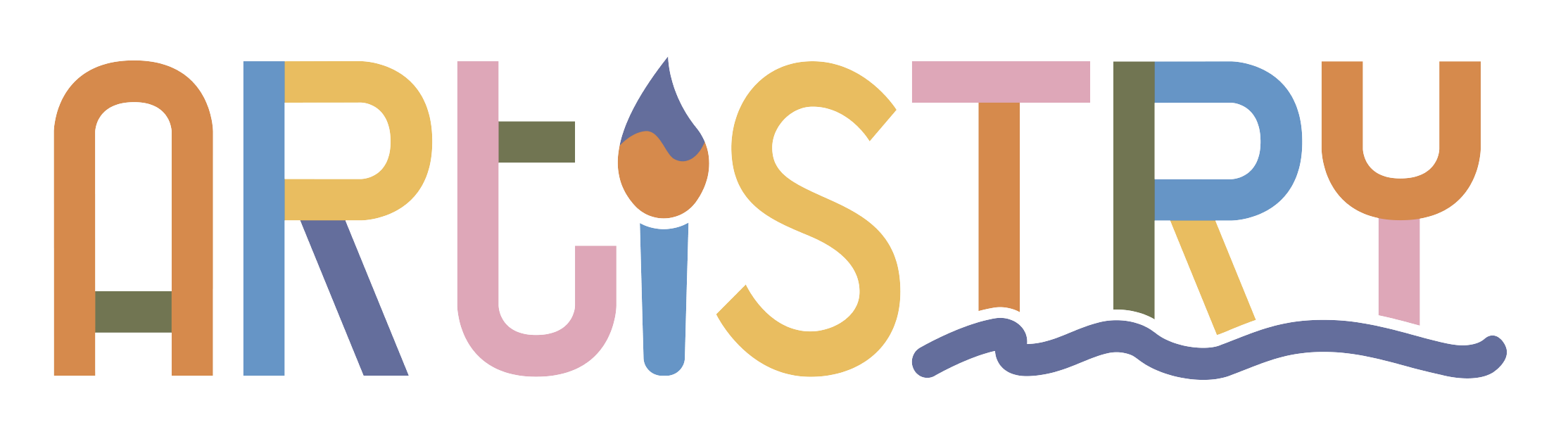 When brainstorming what I wanted to communicate through the name and visuals of the logo, artistry, create and try came to mind. I decided on the name Artistry as it plays off this relationship where the word try can be found in artistry. As for the logo itself, I wanted it to be playful and really embody creativity. I found myself going back to this idea of color blocking the characters and decided to play off this concept.
