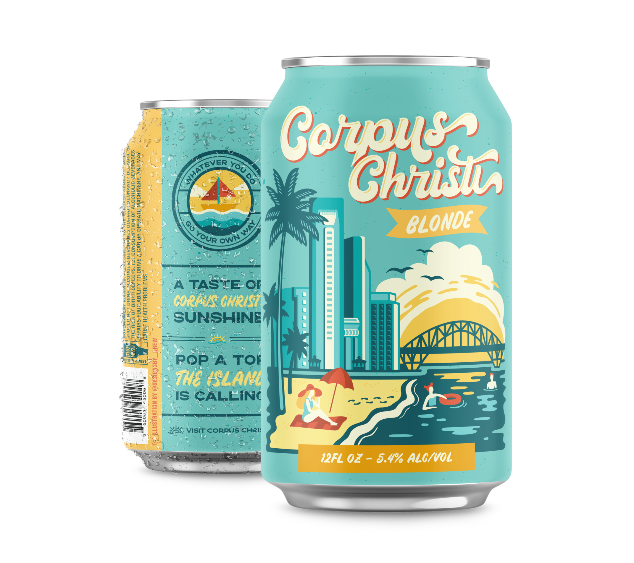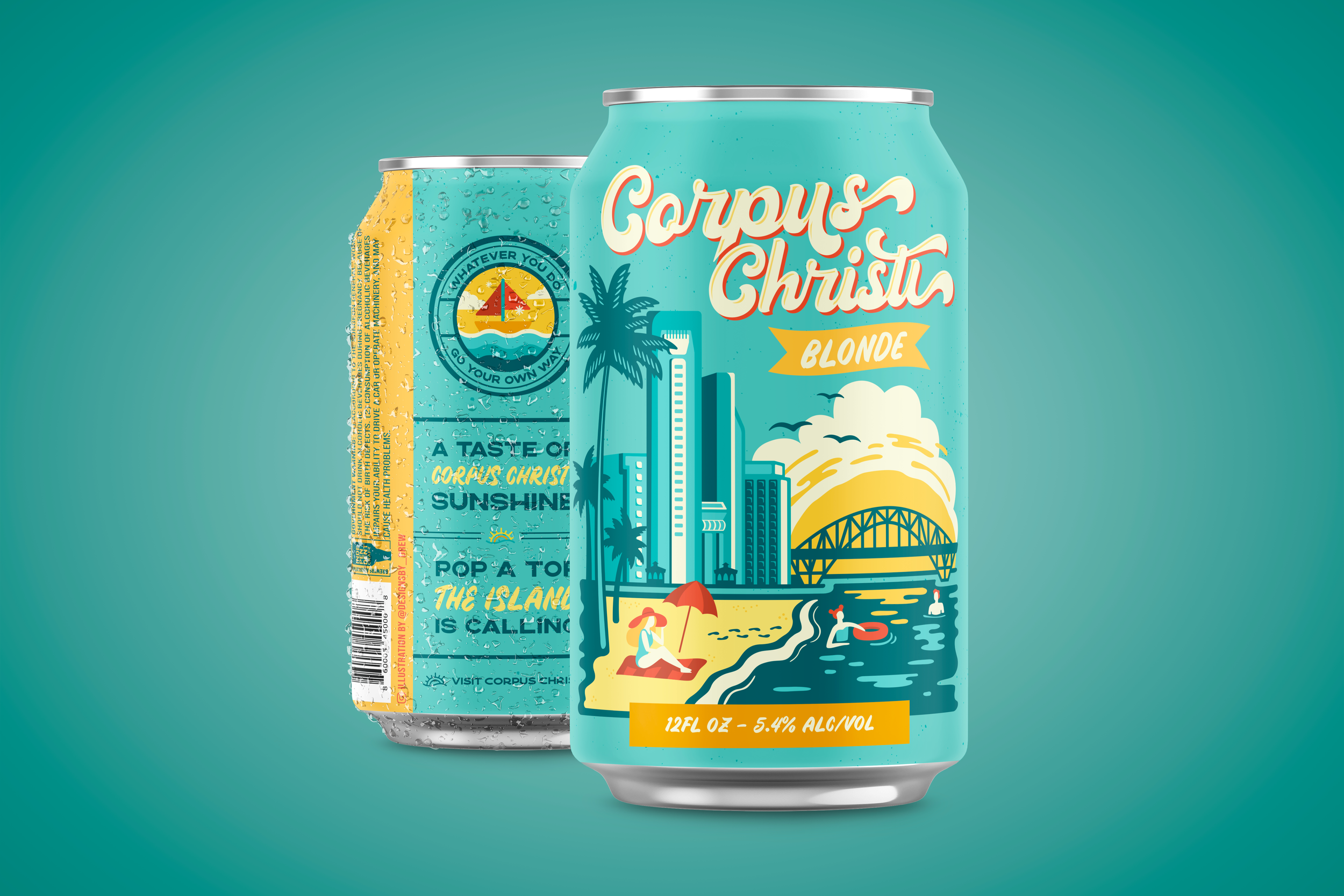 For Lazy Beach Brewing Co.’s Blonde Ale, I created a vibrant can design featuring playful illustrations and iconic landmarks of beautiful Corpus Christi, Texas. The fun, eye-catching style captures the laid-back coastal vibe of the region, celebrating local pride while standing out on the shelf.
